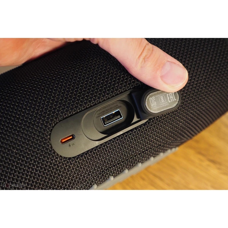 این اسپیکر دارای پاور بانک داخلی می باشد که می توانید از طریق آن دستگاه های دیگر خود را به راحتی و از طریق پورت USB شارژ کنید. ظرفیت بالای باتری این اسپیکر کمک می کند تا در واقعی که دستگاه های دیگر ما شارژ کافی نداشته باشند ، بتوانیم از طریق باتری اسپیکر آن ها را شارژ کنیم. این ویژگی در مسافرت ها و گردش ها و محیط هایی که به پریز برق دسترسی نداریم بسیار کاربردی و حیاتی می باشد که جی بی ال شارژ 5 آن را برایمان فراهم کرده است. یکی دیگر از مزیت های این موضوع این است که نیازی نیست در سفر های خود یک دستگاه پاور بانک نیز همراه خود ببرید و کیف خود را سنگین تر کنید ، فقط کافی است Charge 5 را همراه داشته باشید تا بجای دو دستگاه برای شما کار کند.